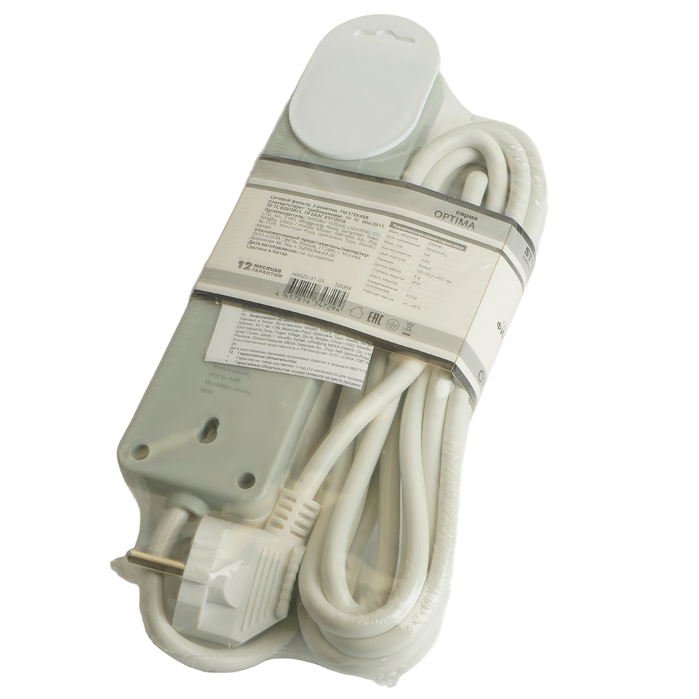 Сетевой фильтр 3-местный с/з Stekker Optima HM20-31-05 50088
