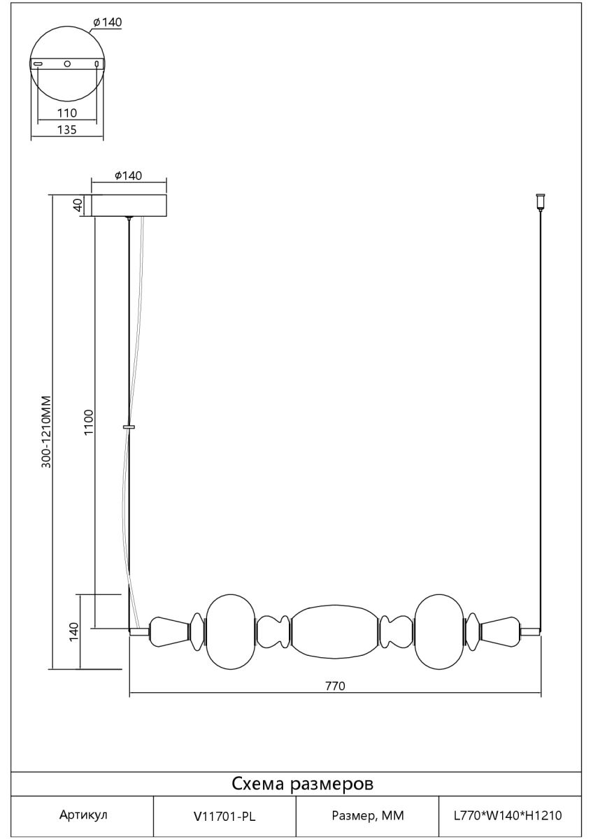 Длина подвеса в мм